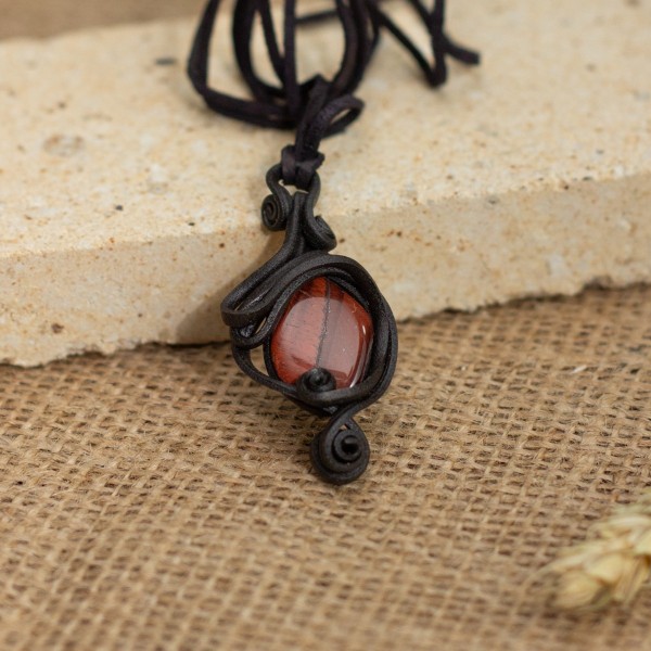 Jemný přívěsek s karneolem z umělecké pryskyřice.