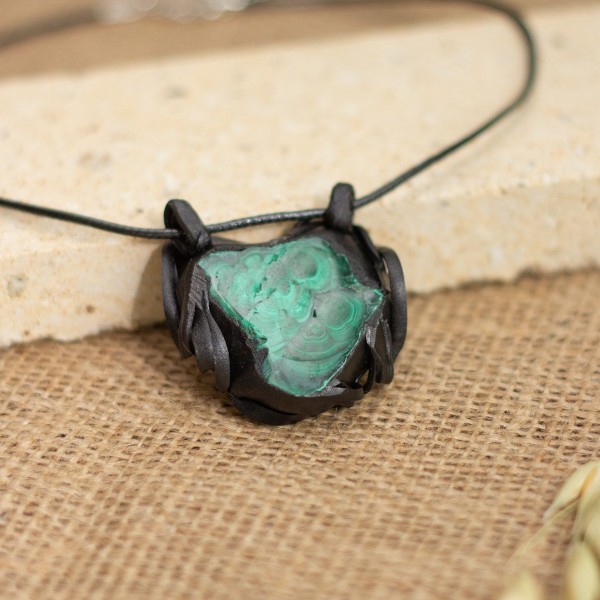 Velký přívěsek s achátem a jemným zdobením z umělecké pryskyřice.