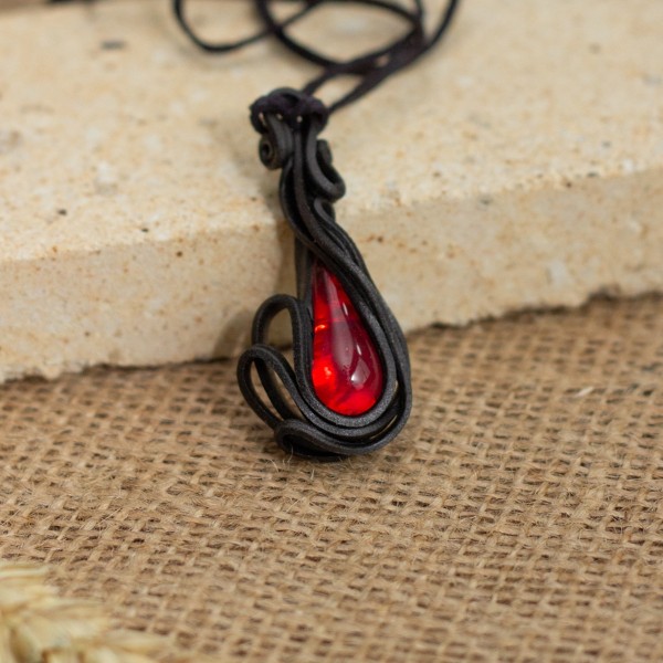 Jemný, ručně tvarovaný přívěsek se skleněnou kapkou červené barvy. Velikost malých přívěsků je přibližně 5cm.