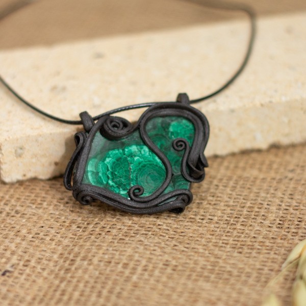 Velký přívěsek s achátovým plátkem a jemným zdobením z umělecké pryskyřice.