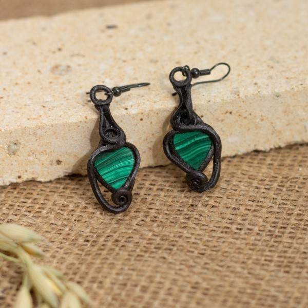 Lehké visací náušnice s výraznými zelenými skleněnými kapkami.