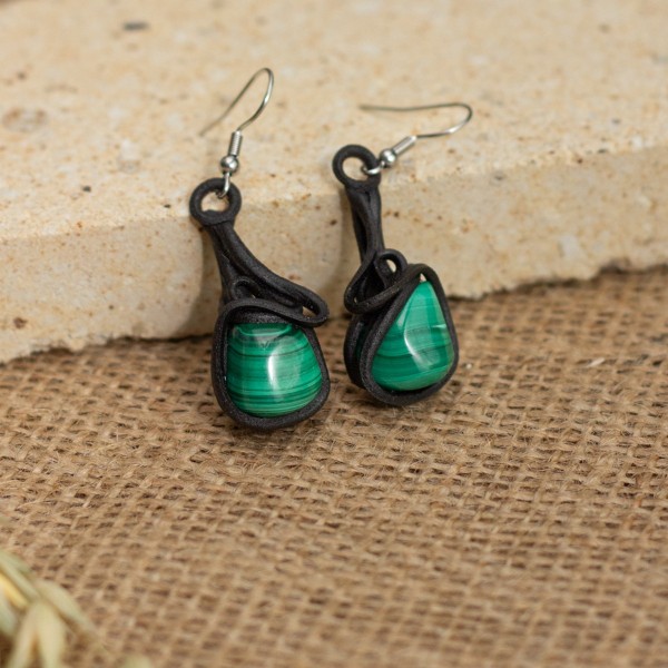 Visací náušnice s malachitem z umělecké pryskyřice.