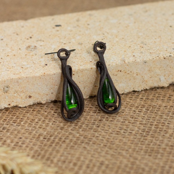 Visací náušnice z umělecké pryskyřice se skleněnými kapkami. Hmota je pružná, imituje kůži, odolná vůči vodě. Vhodná pro alergiky. Velikost náušnic bez kovodílu je 1,5 až 3cm.