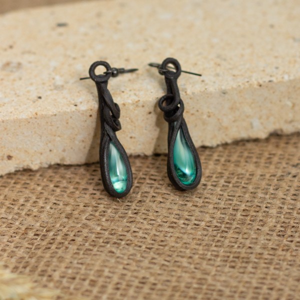 Visací náušnice s malachitem z umělecké pryskyřice.