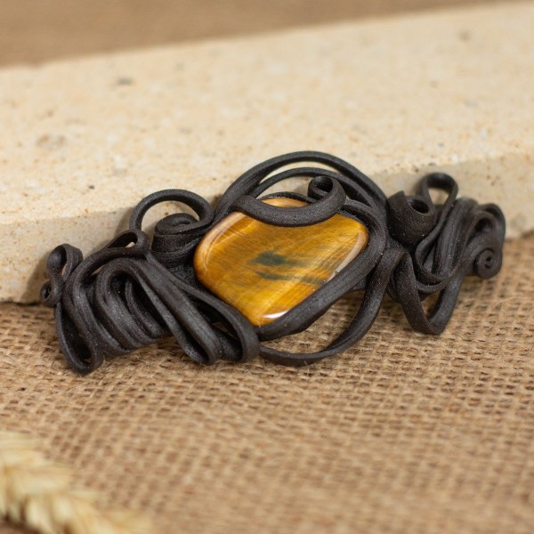 Spona do vlasů s avanturínem z umělecké pryskyřice a kovovým mechanismem o velikosti 8cm. Celková velikost spony je přibližně 10cm.