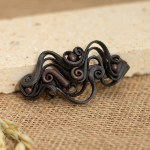 Spona do vlasů přírodní z umělecké pryskyřice a kovovým mechanismem o velikosti 8cm. Celková velikost spony je přibližně 10cm.