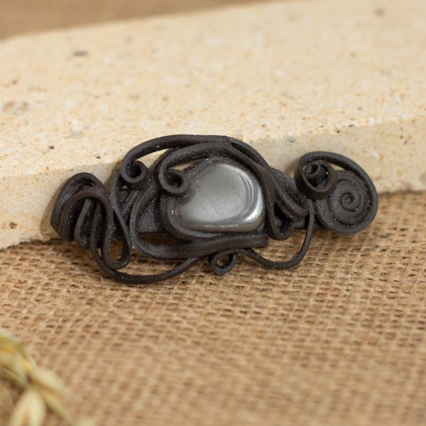 Spona do vlasů s tygřím okem z umělecké pryskyřice a kovovým mechanismem o velikosti 8cm. Celková velikost spony je přibližně 10cm.