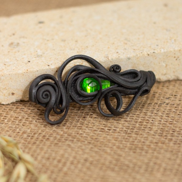 Spona do vlasů s červeným jaspisem z umělecké pryskyřice a kovovým mechanismem o velikosti 8cm. Celková velikost spony je přibližně 10cm.