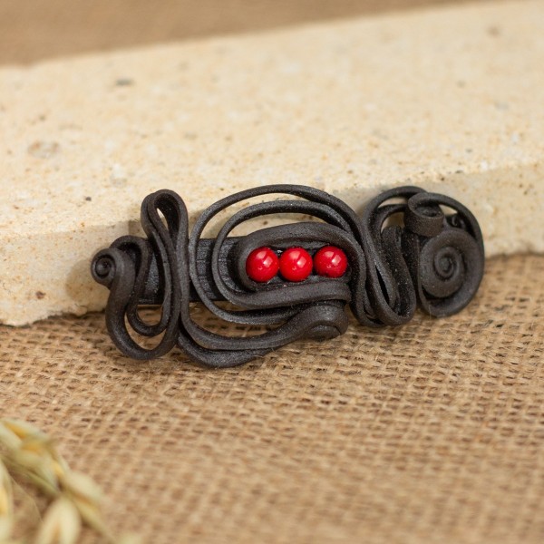 Lehká, každodenní Spona do vlasů bez kamene – dominantou jsou tři hladké korálky. Vlnící se pásky pryskyřice tvoří elegantní rám.